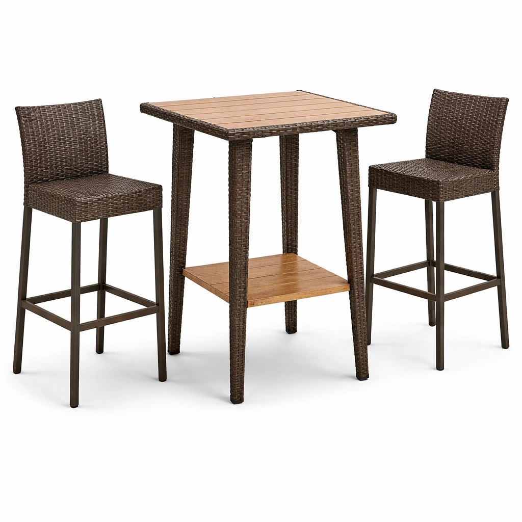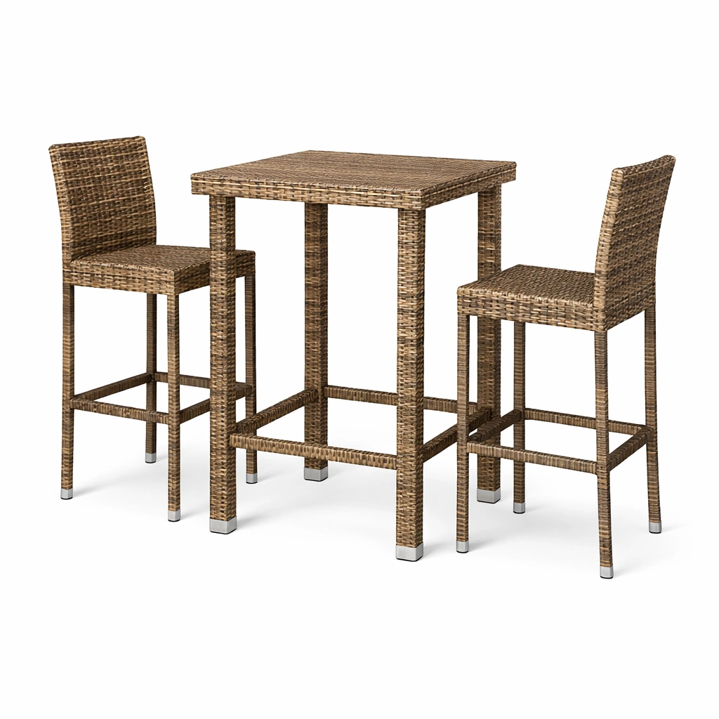 Juego de bar de mesa y sillas de ratán sintético marrón