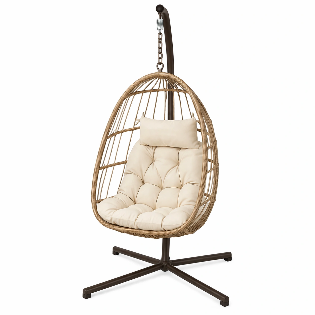 Silla colgante de ratán sintético beige con cojín