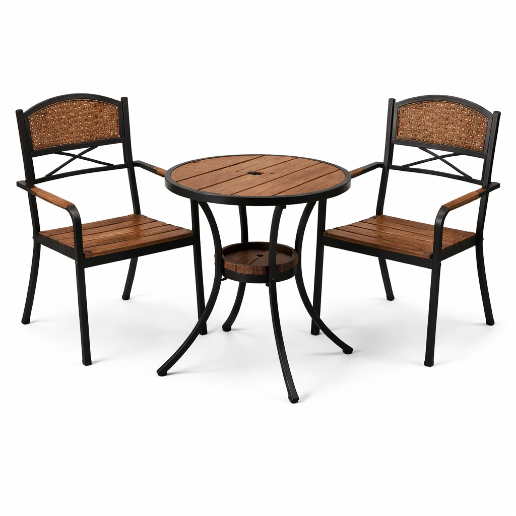 Material: Estructura de acero con acabado en polvo, superficie de madera de acacia
