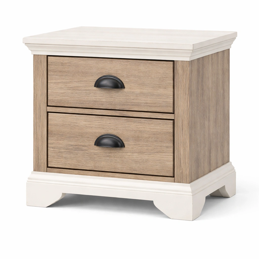 Mesita de noche de madera de ingeniería con 2 cajones roble y blanco